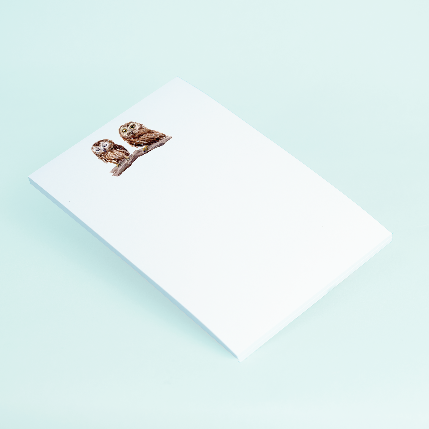 Embrace the adorable charm of our notepad adorned with watercolor baby owls. Share your joy and heartfelt wishes with this endearing design from Taylor Paladino, ideal for celebrating milestones, or just to send a note to someone you love.