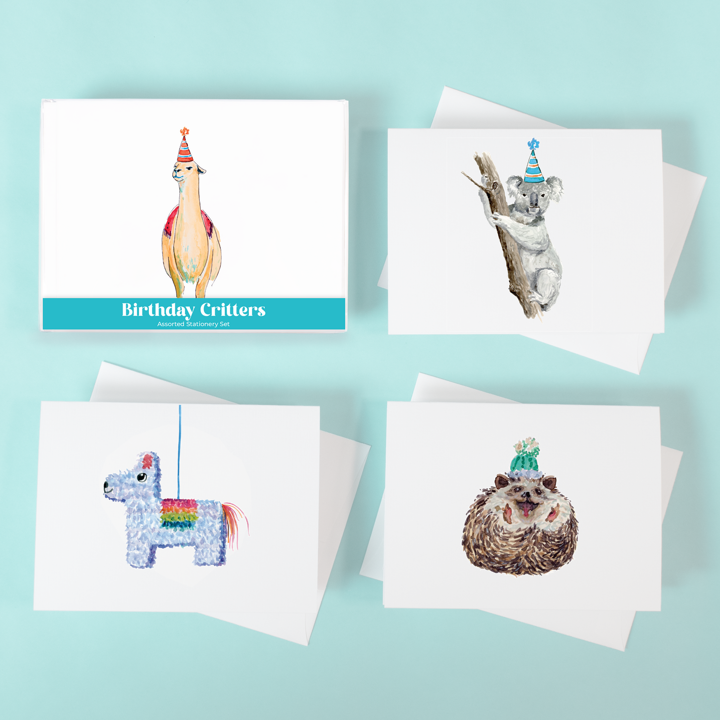 Celebrate in style with our enchanting birthday party animals adorned with whimsical watercolor designs. Bursting with vibrant colors, this card captures the joy and excitement of special birthdays. It is the perfect addition to any gift and will make any birthday unforgettable.