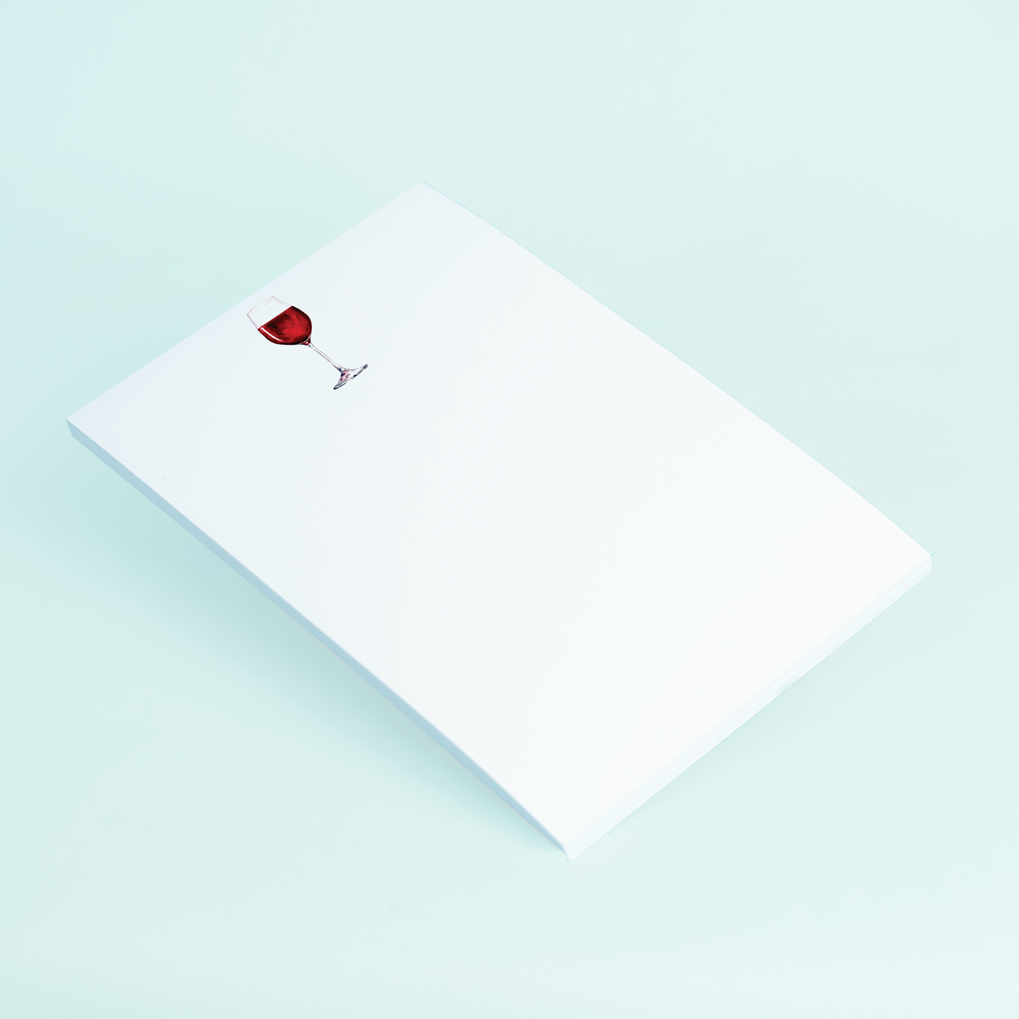 Introducing our beautiful 4 x 6-inch notepad featuring an original watercolor design by Dallas based artist Taylor Paladino. Each page of this top-bound notepad showcases a beautifully detailed wine glass half full of red wine, expertly rendered with a blend of warm and cool hues that evoke a sense of relaxation and indulgence.