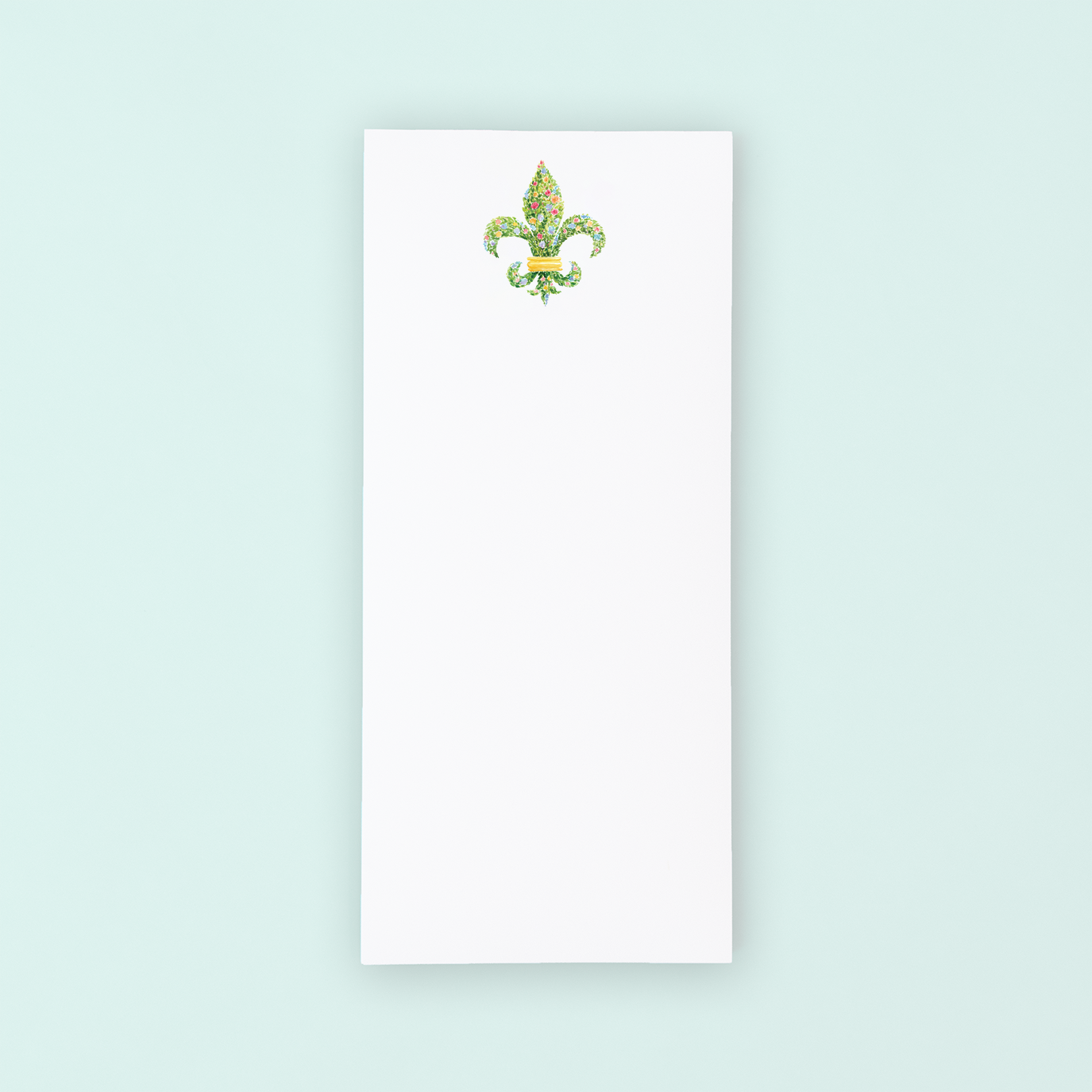 This Floral Fleur de Lis is sure to enhance any occasion, making it a perfect choice for any grocery run or errand day. Whether you're a proud Louisianan or simply appreciate art and design, this notepad with an original watercolor design by Taylor Paladino is a must-have.