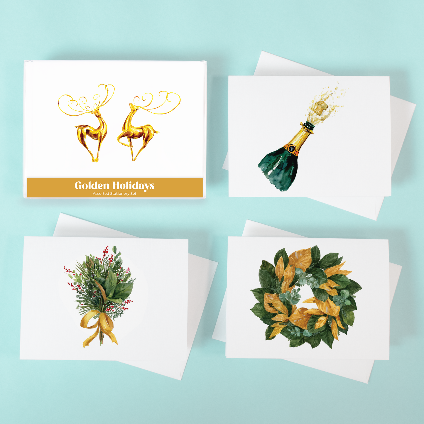 Have a golden holiday with our golden holiday stationery set. This collection is sure to spread Christmas cheer to anyone who recieves these.