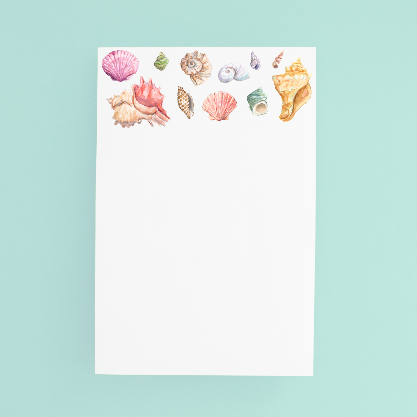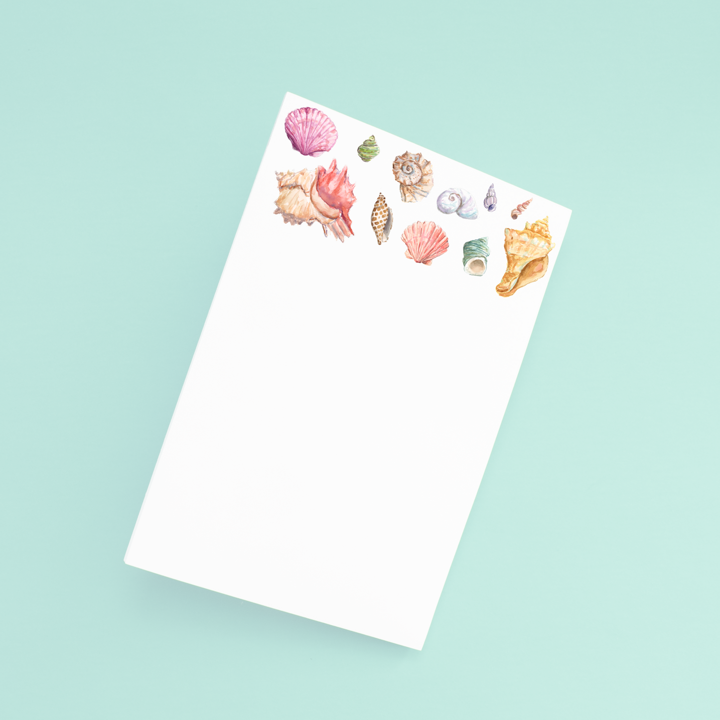 Introducing the Seashell Jumbo Pad, a 6x9 inch notepad featuring artwork by Dallas-based artist Taylor Paladino. This top-bound notepad showcases beautiful watercolor designs, perfect for all your writing needs. Express your creativity with every page.