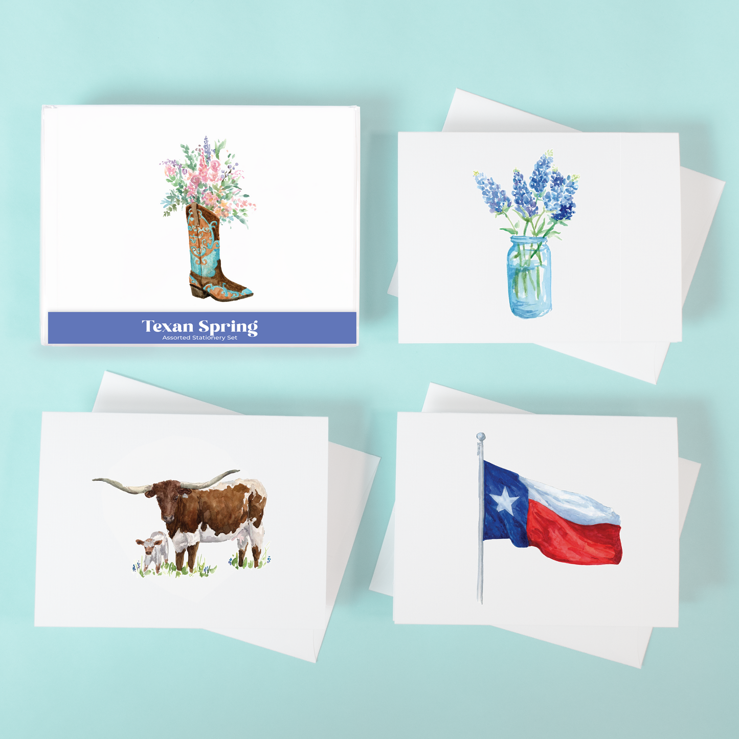 Introducing the A2 Assorted Stationery Set, a delightful collection of handcrafted cards featuring stunning original watercolor designs by the talented Dallas-based artist, Taylor Paladino. Each set includes eight exquisite cards, with two cards of each unique design, made from high-quality linen cardstock. Along with the cards, you'll find nine matching envelopes, making it the perfect all-in-one stationery package.