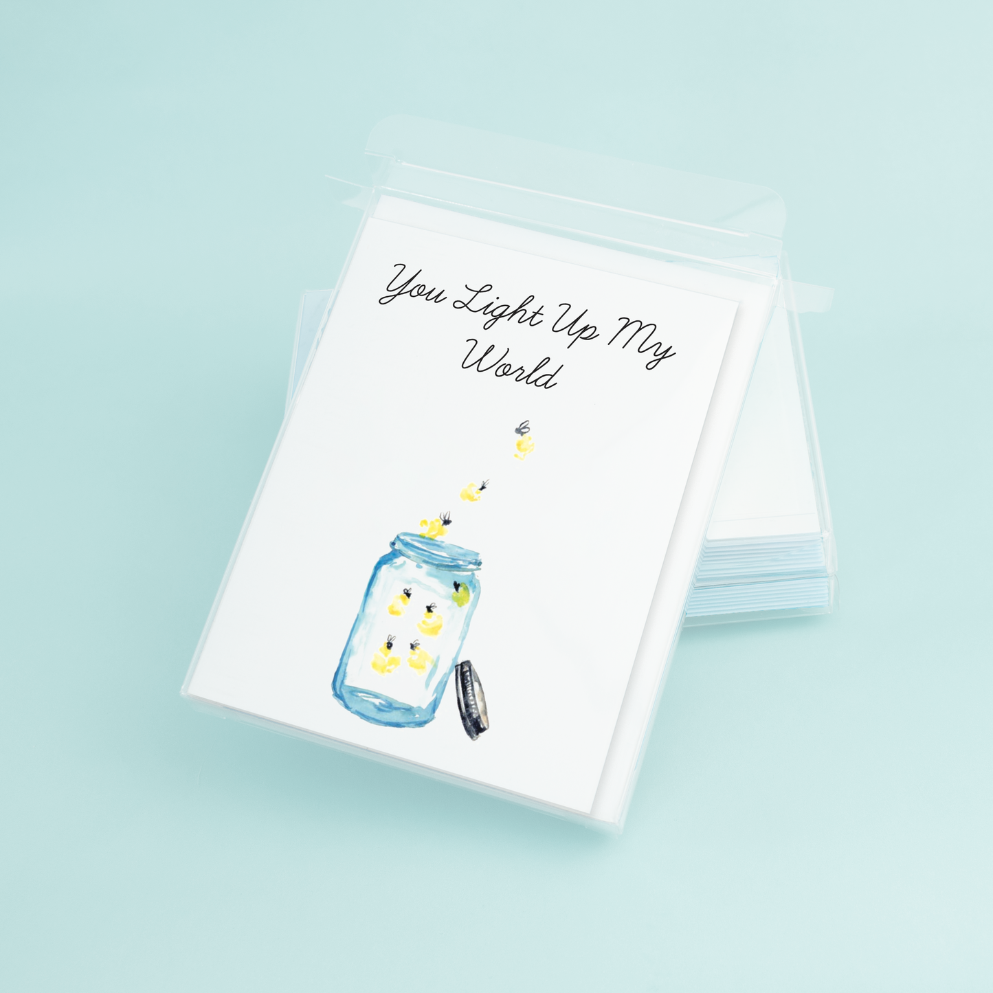 Send your loved one a sweet note with our lightning bug card. The blank inside means that you can list all the reasons how they light up your world.