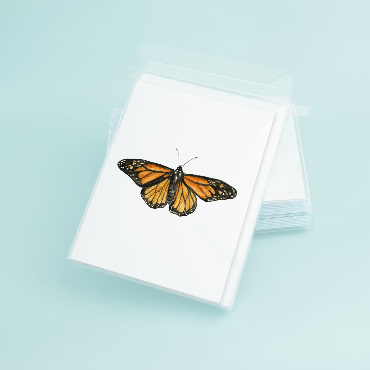 The Monarch butterfly is known for its beauty and grace, and this design captures that essence perfectly. The use of watercolors adds a touch of whimsy and playfulness, making it perfect for any occasion - from birthdays to thank you notes, or just to brighten someone's day. The blank interior allows for a personalized message to be added, making it the perfect card for any occasion.