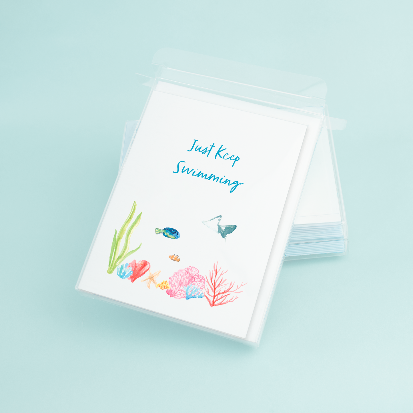 Regular price $3.50Introducing our A2 greeting card featuring an original watercolor design by Dallas based artist Taylor Paladino. The front of the card showcases a stunning reef scene with a beautifully detailed coral reef and a variety of colorful fish, expertly rendered with a blend of warm and cool hues that evoke a sense of wonder and tranquility.