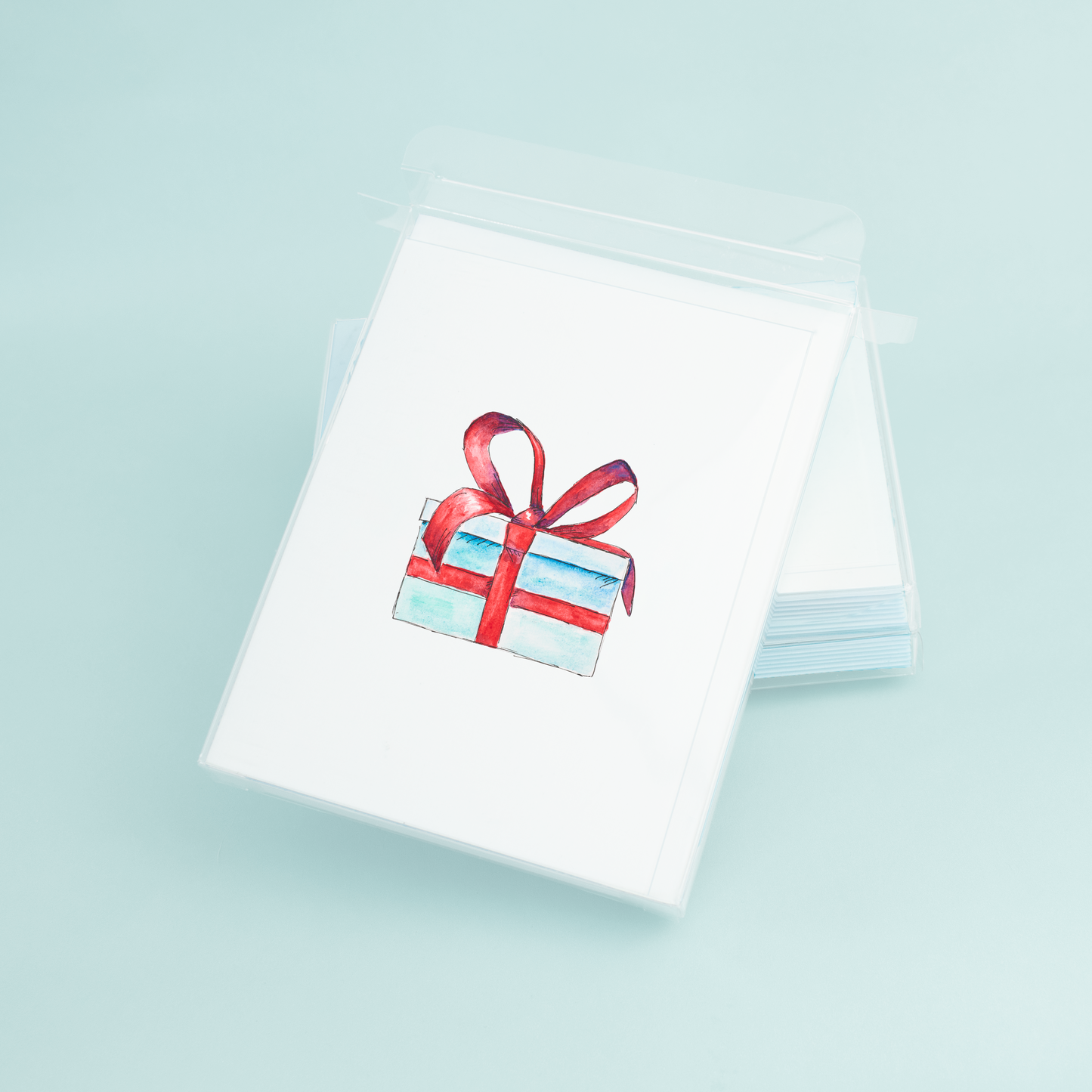 Get wrapped up in holiday cheer with this simple present design. The simplicity of this design allows for you to use this card whenever you need it! Use it for sending well wishes or with a gift for a personal touch.