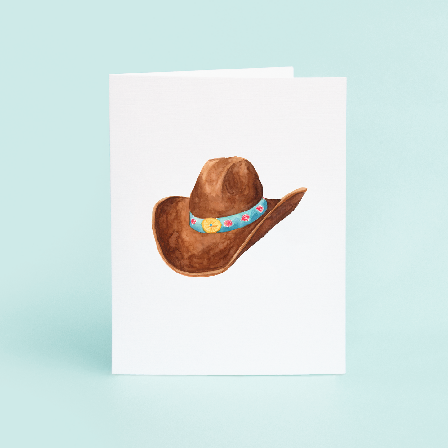Regular price $3.50Celebrate the spirit of the South with our greeting card featuring a beautiful watercolor cowboy hat. Perfect for any Southern belle or Western woman, this charming card captures the essence of rustic elegance and feminine charm. Whether for a birthday, thank you, or just because, this card is sure to delight and inspire.
