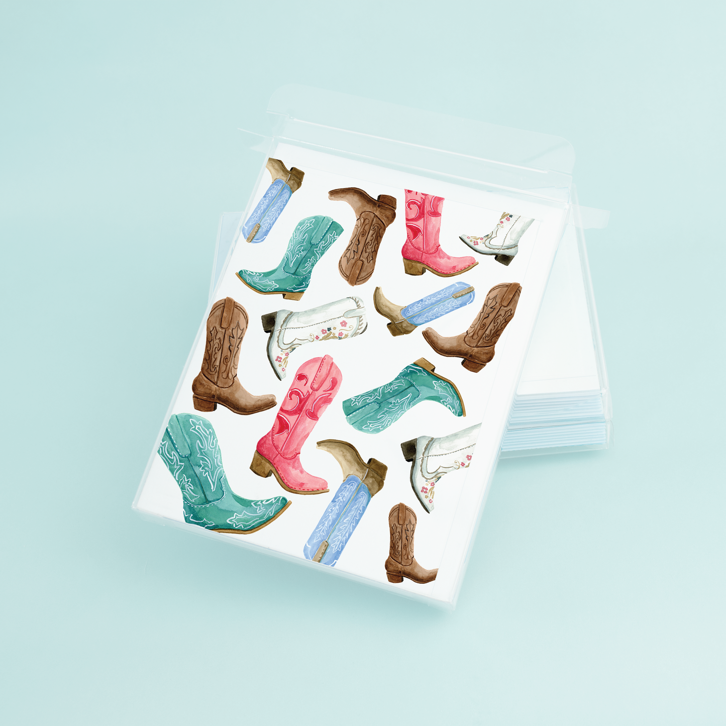 Get ready to boot scootin boogie with these western fashion cowboy boots. This card is perfect for writing letters to your posse or to say thank you for your new pair of boots.