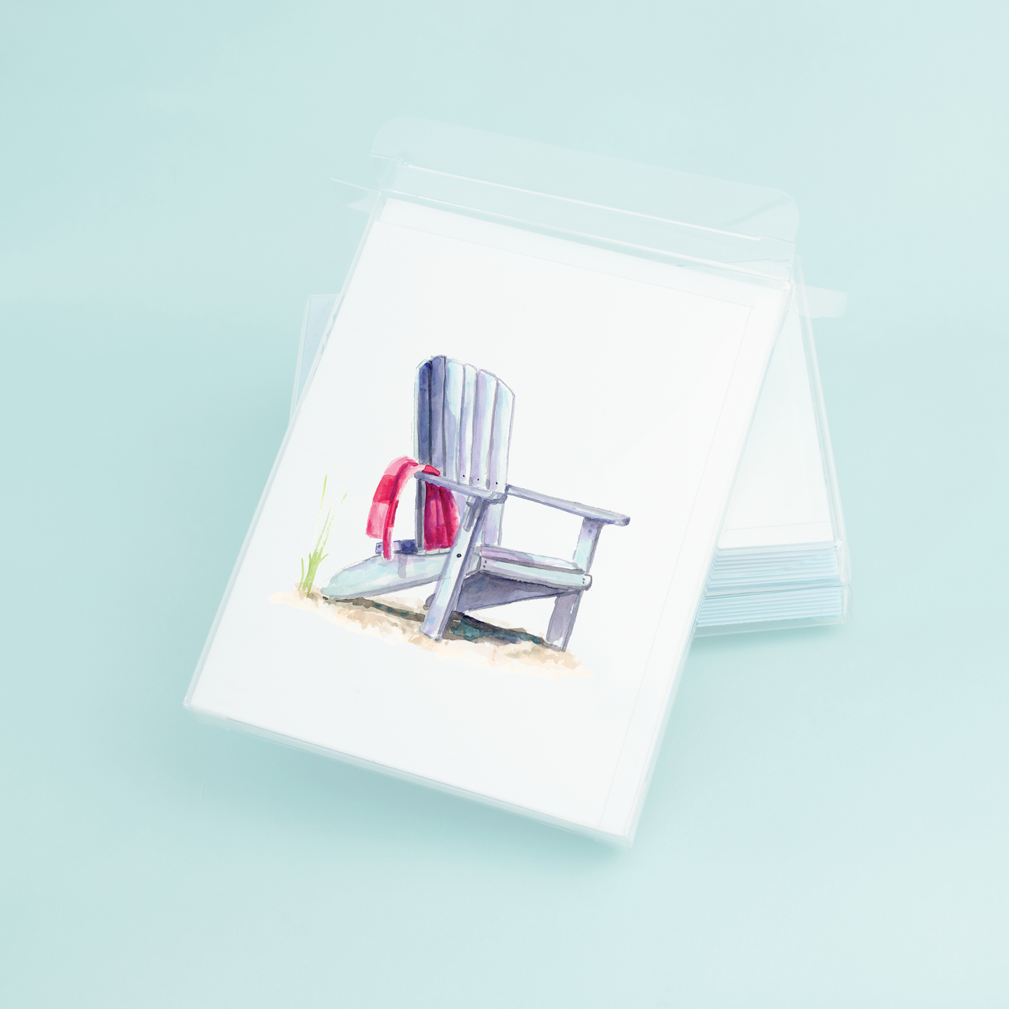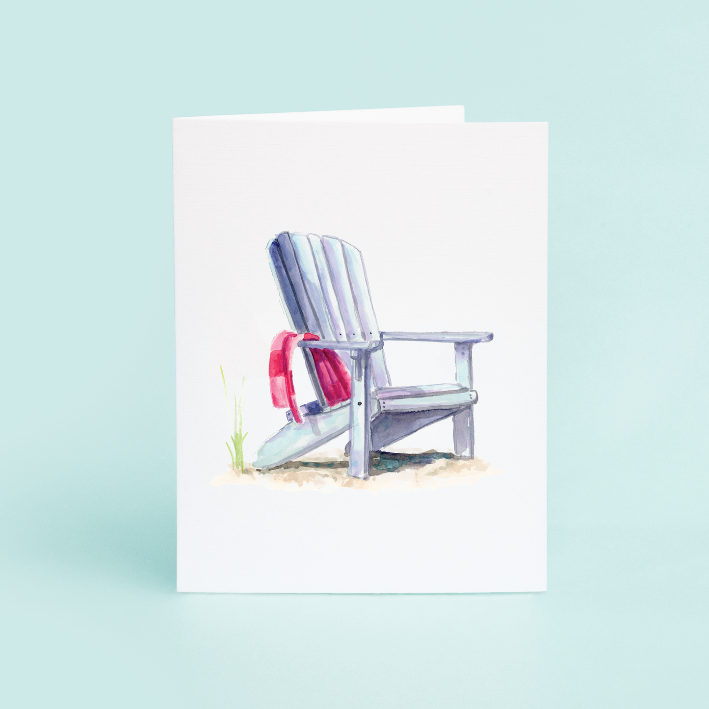 Regular price $3.50Relax and unwind with our charming greeting card featuring a watercolor beach chair. Perfect for sending sunny seaside vibes or reminiscing about coastal getaways, this original artwork captures the essence of leisure and tranquility. Share a moment of serenity and coastal charm with this delightful design from Taylor Paladino, ideal for any occasion where a touch of beachside bliss is desired.