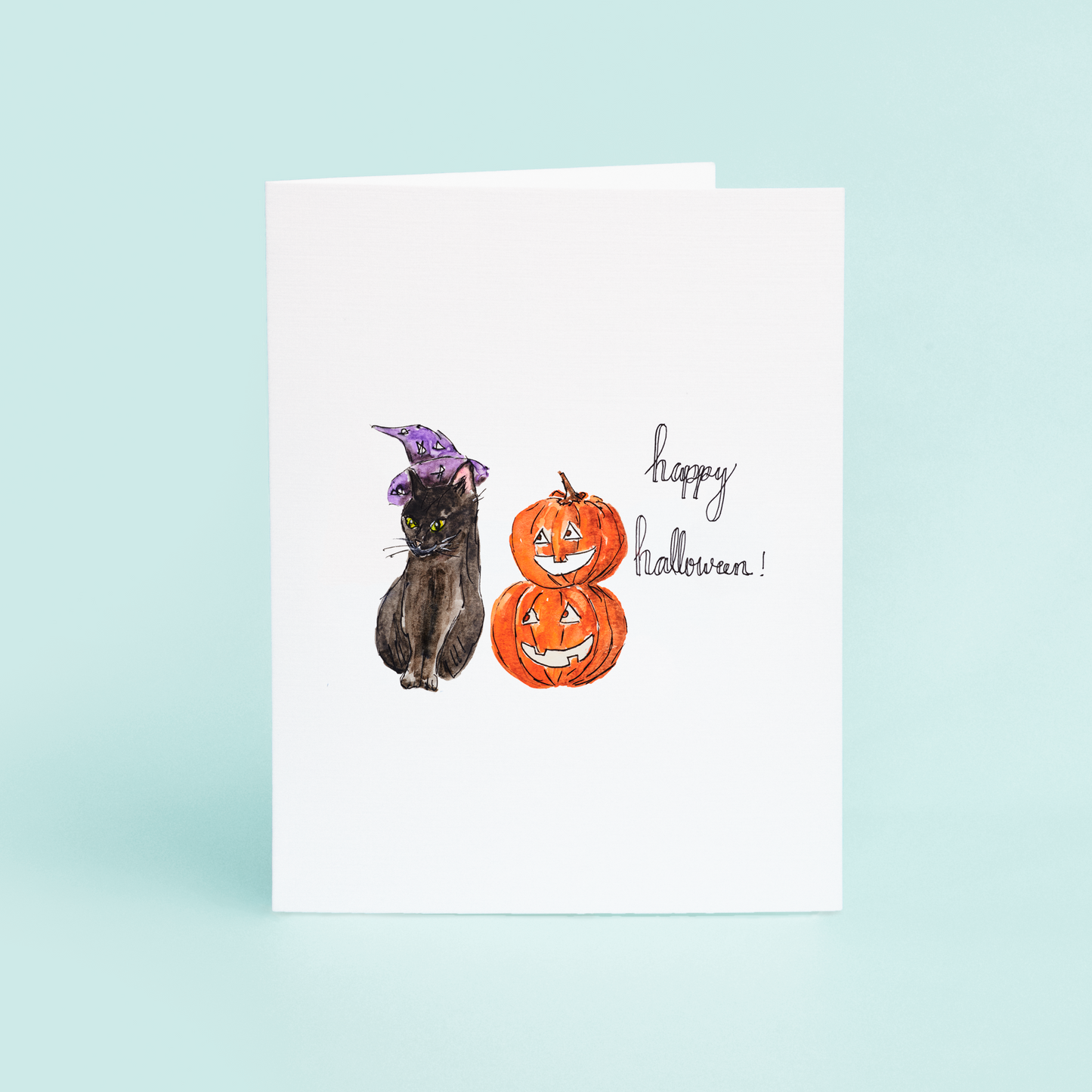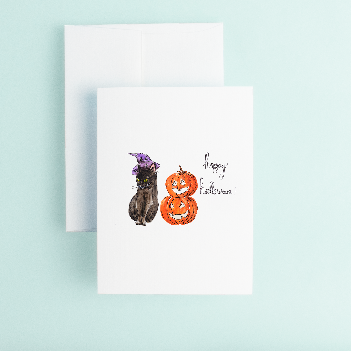 Wish people a happy halloween with this little card! This Halloween card is sure to bring a smile to the faces of your loved ones and add a touch of charm to the season. So, whether you're sending it to family or friends, this card is a perfect way to celebrate spooky season.