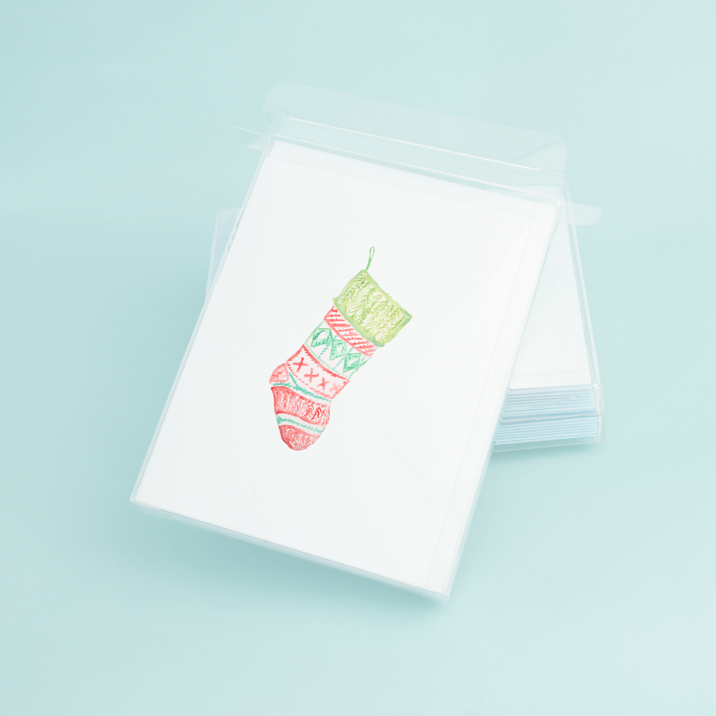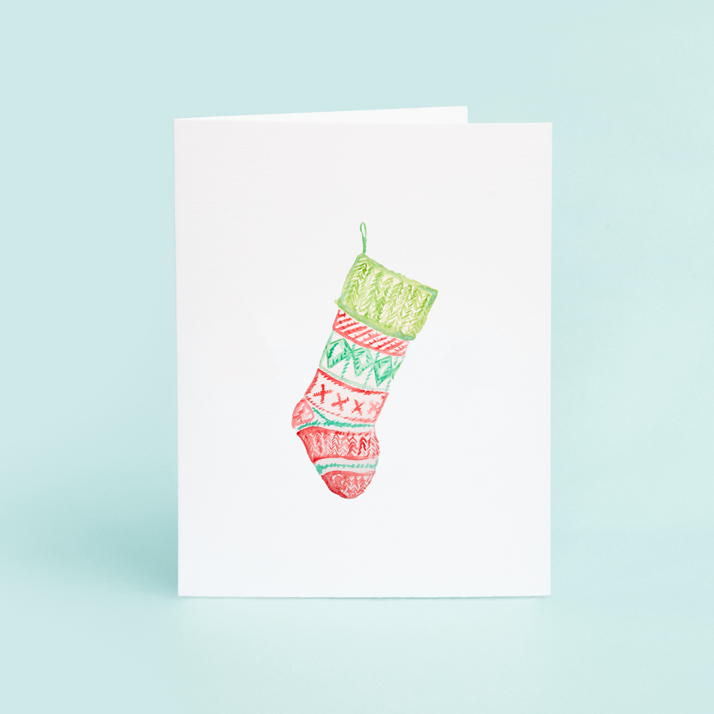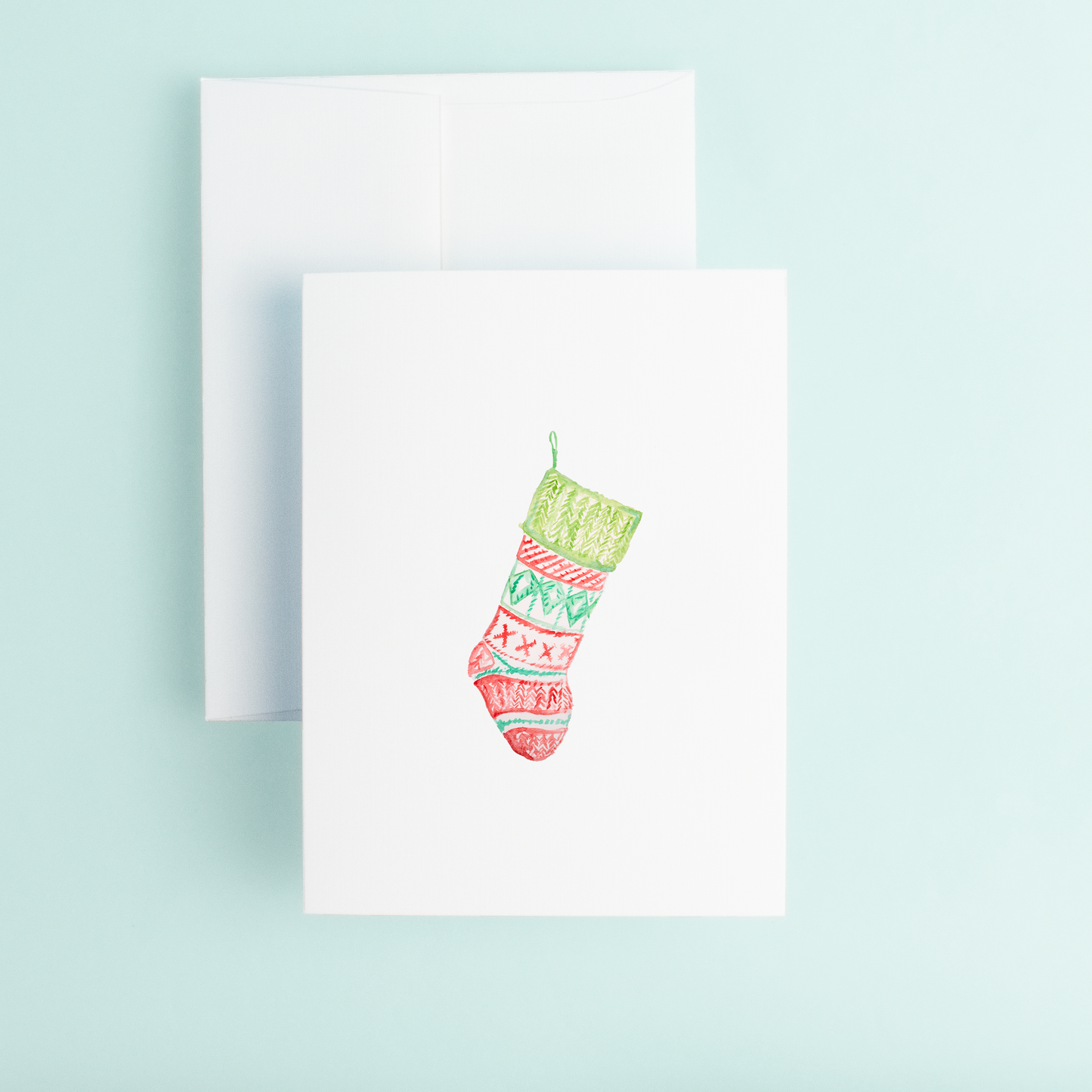 This festive stocking is ready to help you celebrate the holidays. With a blank inside you can add a personal note to send some yuletide greetings.