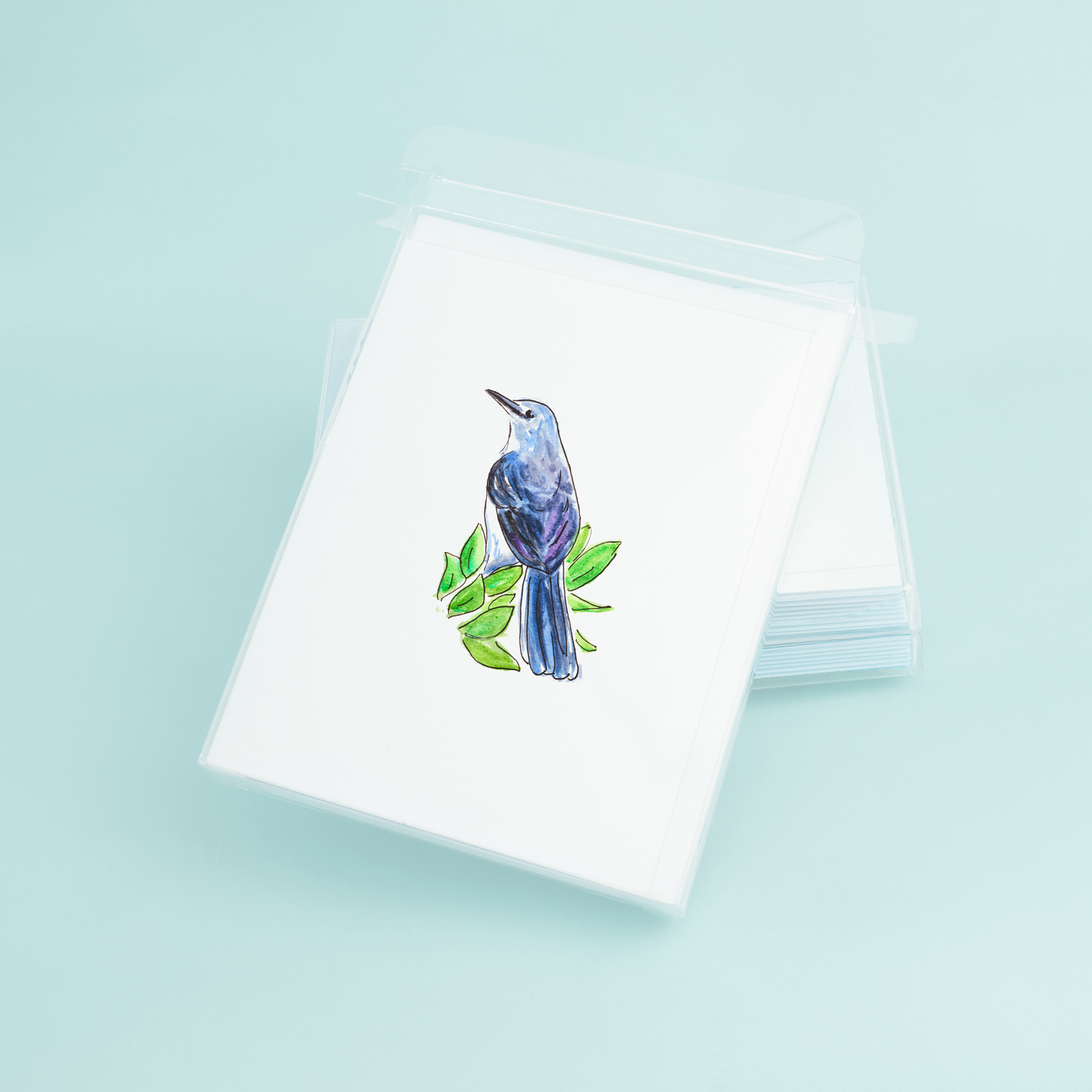 Whether you're a bird lover, a Texan, or simply appreciate great design, this A2 greeting card is sure to make a statement. Add it to your collection today and share the beauty and spirit of the Mockingbird with someone special, all while staying eco-friendly. The Mockingbird design captures the essence of the bird's gentle beauty, making it the perfect card for any occasion.