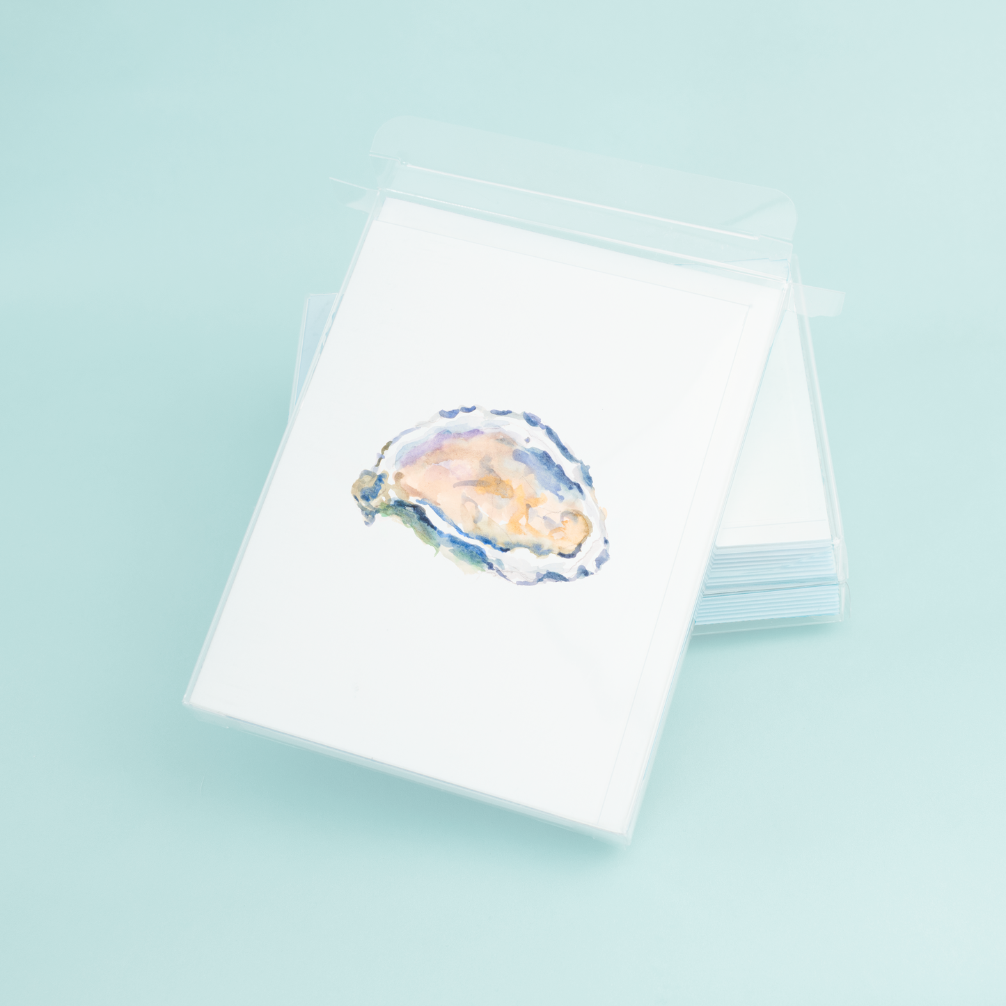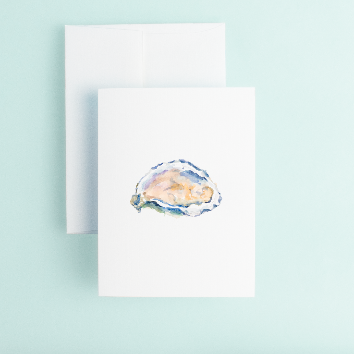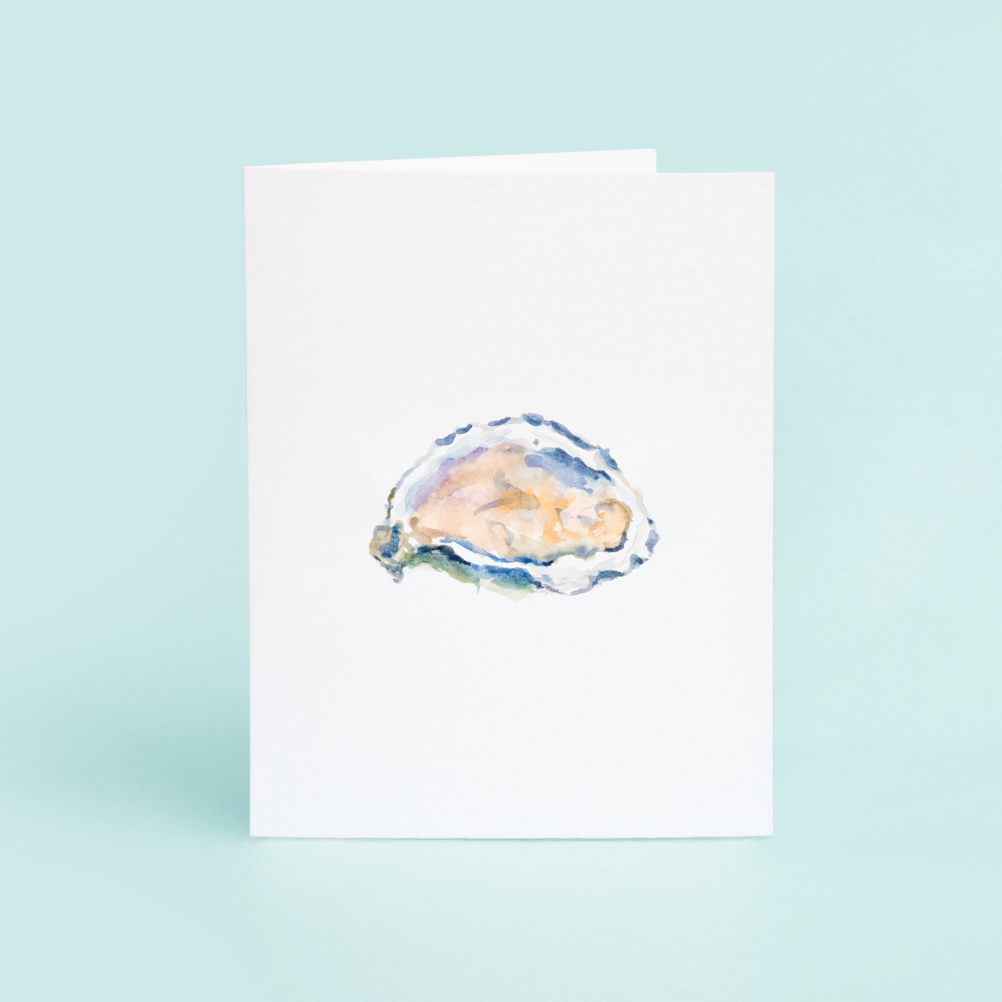 The front of the card showcases the stunning original watercolor design of the half shell oyster, bringing to life the delicate beauty of the ocean's bounty. The colors are rich and true-to-life, and the details are expertly crafted to create an iconic image that will be cherished by all.