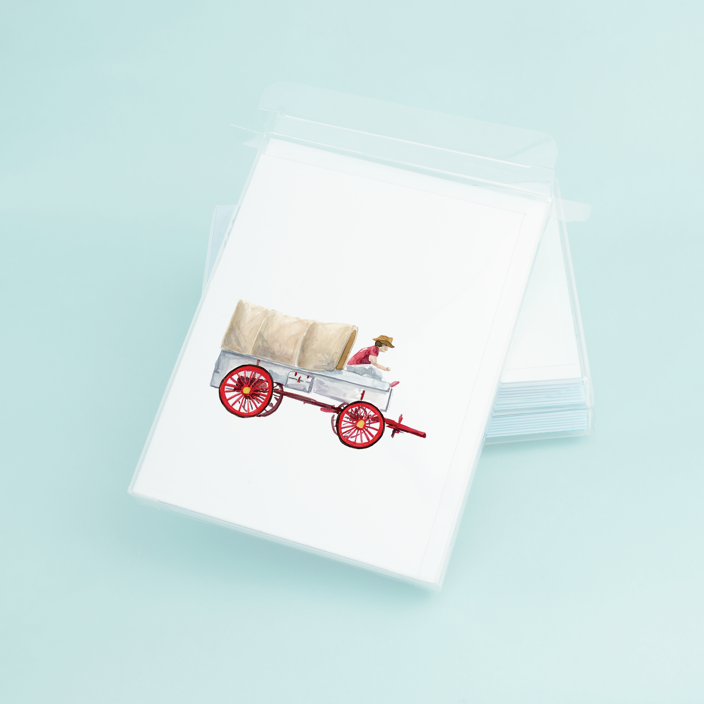 Introducing our new A2 greeting card, featuring an original watercolor design by the talented Dallas based artist, Taylor Paladino. The front of the card showcases a stunning painting of a Sooner wagon, capturing the spirit of the Oklahoma state and its rich history. The intricate details and beautiful colors of the painting truly make this card a work of art.